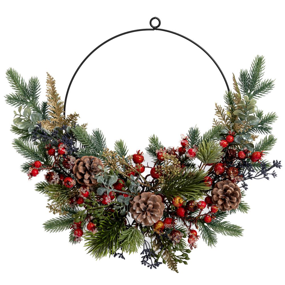 ΠΑΓΩΜΕΝΟΠΡΑΣΙΝΟ ΣΤΕΦΑΝΙ ΜΕ ΚΟΚΚΙΝΑ BERRIES ΚΑΙ ΚΟΥΚΟΥΝΑΡΙΑ 30ΕΚ