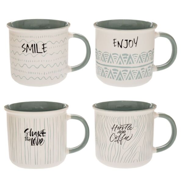 ΛΕΥΚΗ ΚΕΡΑΜΙΚΗ ΚΟΥΠΑ ΜΕ ΓΚΡΙ ΣΙΕΛ ΜΟΤΙΒΑ 4 ΣΧΕΔΙΑ 400ml