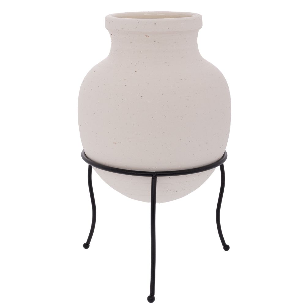 ΛΕΥΚΟ ΚΕΡΑΜΙΚΟ ΒΑΖΟ ΣΕ ΜΑΥΡΟ ΣΙΔΕΡΕΝΙΟ ΤΡΙΠΟΔΑ 20Χ20Χ28ΕΚ