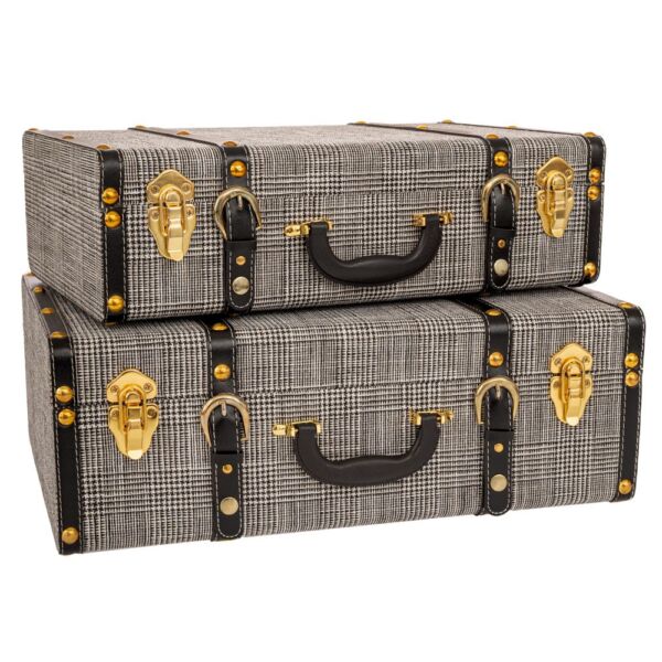 ΣΕΤ 2 ΑΣΠΡΟΜΑΥΡΕΣ ΚΑΡΟ ΒΑΛΙΤΣΕΣ ΜΕ ΧΡΥΣΕΣ ΛΕΠΤΟΜΕΡΕΙΕΣ 50Χ17Χ34ΕΚ 46Χ14Χ28ΕΚ