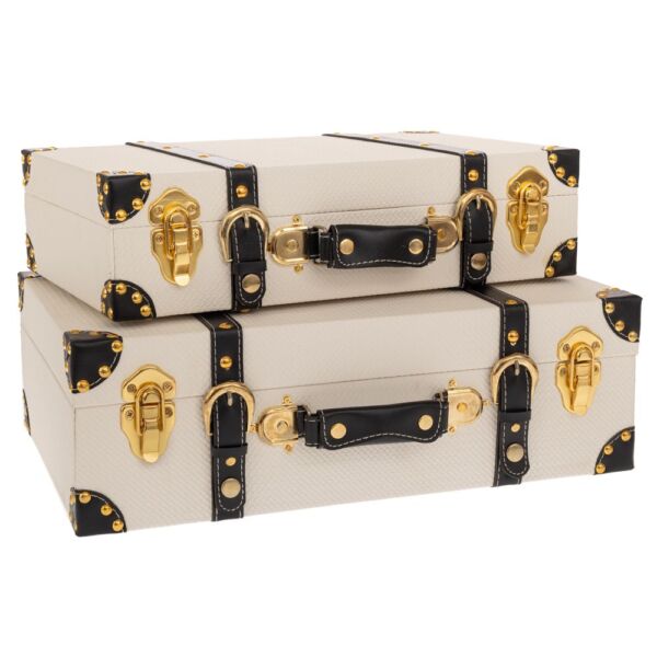 ΣΕΤ 2 ΛΕΥΚΕΣ ΒΑΛΙΤΣΕΣ ΜΕ ΜΑΥΡΕΣ ΔΕΡΜΑΤΙΝΕΣ ΛΕΠΤΟΜΕΡΕΙΕΣ 45Χ15Χ30ΕΚ 40Χ10Χ25ΕΚ