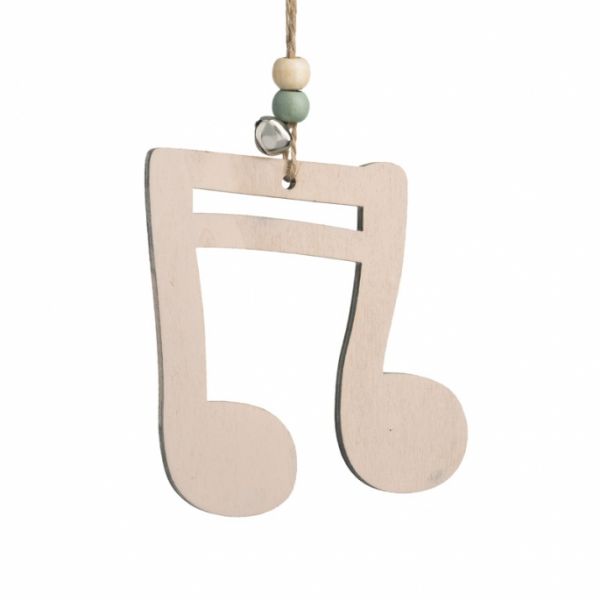 Ξύλινη κρεμαστή νότα σε natural απόχρωση. Στο πάνω μέρος είναι διακοσμημένο με βεραμάν χάντρες,κουδουνάκι και σπάγγο.