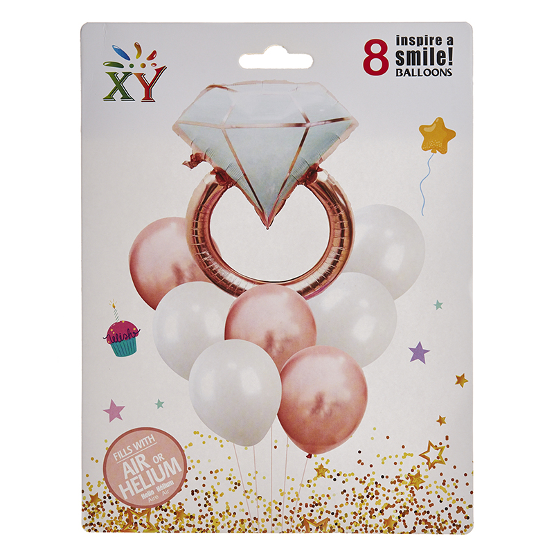 Το μπαλόνι Διαμάντι είναι 60*83εκ και τα υπόλοιπα 7 μπαλόνια 30εκ