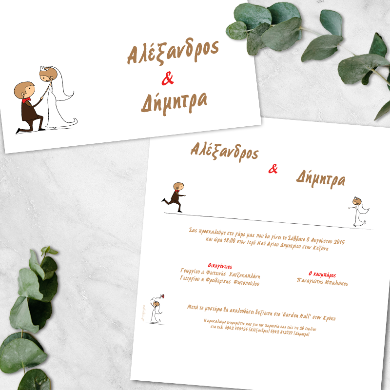 Το προσκλητήριο περιλαμβάνει δύο εκτυπώσεις, μια εσωτερική και μία εξωτερική.