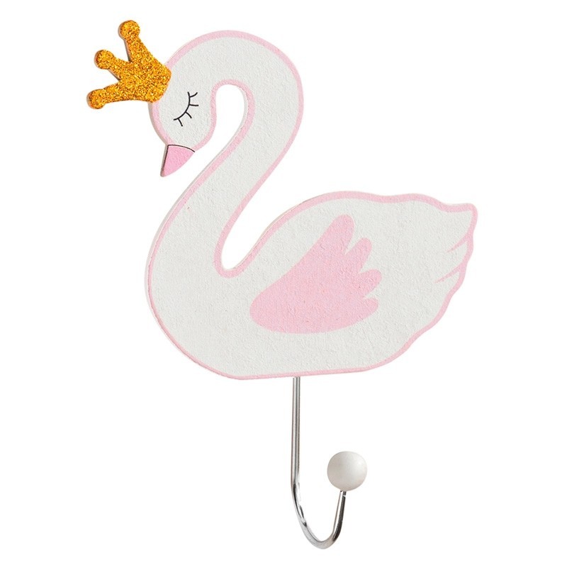 Ξύλινη κρεμάστρα τοίχου με κύκνο σε αποχρώσεις λευκές-ροζ με χρυσή κορώνα